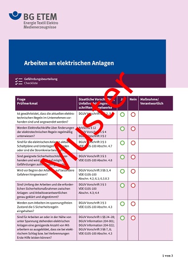Checklisten zur Gefährdungsbeurteilung: Energieversorgungsunternehmen