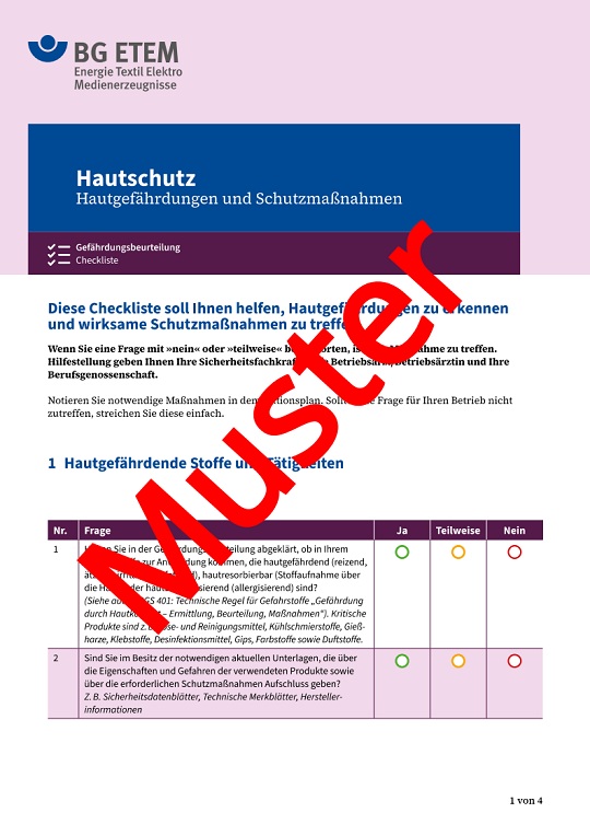 Checklisten zur Gefährdungsbeurteilung: Hand- und Hautschutz