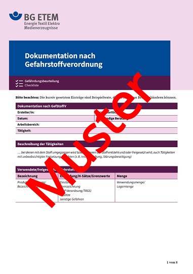 Musterdokumentation der Gefährdungsbeurteilung nach Gefahrstoffverordnung (S017a)